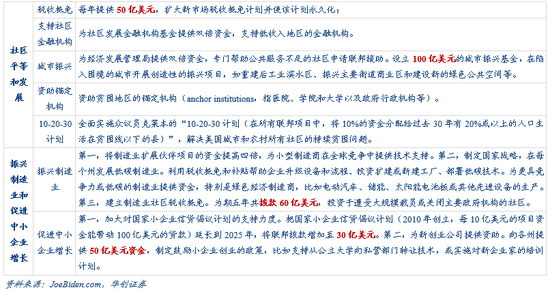 1)每年提供50亿美元,扩大新市场税收抵免并使该计划永久化;2)为社区发展金融机构基金提供双倍资金,支持低收入地区的金融机构。3)设立100亿美元的城市振兴基金,在陷入困境的城市开展创造性的振兴项目。4)资助贫困地区的锚定机构(指医院、学院和大学以及政府行政机构等)。5)全面实施“10-20-30计划(在所有联邦项目中,将10%的资金分配给过去30年有20%或以上的人口生活在贫困线以下的县)”。