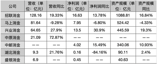 几家头部平台中,只有‘招联消费金融’和‘兴业消费金融’的财务表现保持了两位数以上的增速;