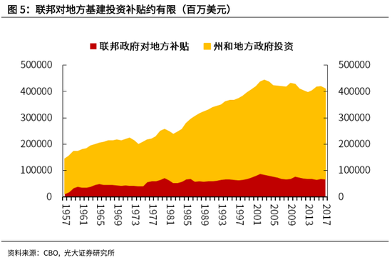 联邦政府通过各种方式补贴地方政府。联邦政府通过多种方式补贴地方政府,包括允许地方政府发行免税债券及税收抵免债券,补贴地方银行、直接向地方政府发放贷款或提供担保,以促进地方基建投资。近年来联邦政府补贴约占地方政府年基建投资额的17%左右。