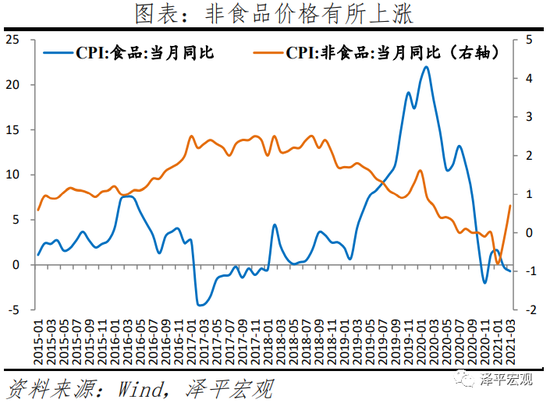 3月CPI同比上涨0.4%,较上月上升0.6个百分点;环比-0.5%,整体上行压力不大。分项来看,食品分项为拖累项,主要是猪周期下行。非食品分项起拉动作用,尤其是油价推升,但服务价格涨幅有限。