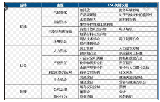 2、ESG指标框架:由于全球可持续发展的现状与趋势(例如气候变化,资源稀缺,人口结构变化)以及公司运营的性质构成了环境、社会和公司治理方面的风险与机遇,因此MSCI ESG团队过定量模型确定了每个行业的重大风险和机遇,并构建了一套指标框架。
