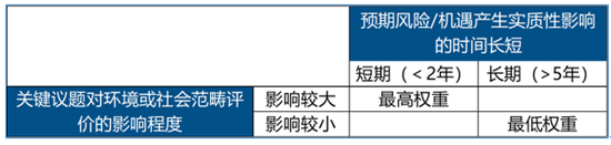 指标权重高低的分配主要考察两个方面:一方面是该指标对子行业的影响程度,另一方面是可能受影响的时间长度。在不同类型的子行业中,MSCI为每项关键指标分配了“高”“中”或“低”的影响程度,以及“短期”“中期”“长期”的影响时间。
