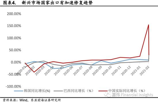 从总量上来看,全球经济复苏共振下中国出口利好快速兑现