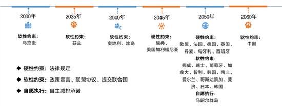 同时,“碳中和”作为应对气候变化的关键目标也被列入各国绿色复苏计划中。目前全球各国对于碳中和目标的设定主要分为硬性约束、软性约束和自愿执行三类。以欧洲为例,欧洲各国在推进碳中和进程上更为领先且积极,且主要以硬性约束和软性约束为主。2020年3月,欧盟委员会公布《欧洲气候法》草案,从法律层面提出到2050年实现温室气体净零排放。亚洲则多以半强制性的政策宣言为主,中国、日本、韩国等都提出了软性约束目标;而美洲对碳中和目标响应有限,且多以软性约束与自愿执行为主。从各国制定的相关方案来看,加快部署零碳解决方案以及加大零碳技术的研发与推广将是实现碳中和目标的重要战略方向。