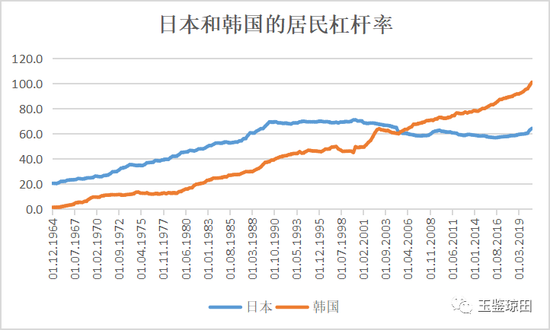 美国、英国、丹麦、爱尔兰居民杠杆率的最高点都是约晚于房价最高点2年,西班牙是3年。日本房价指数在1991年达到最高点,韩国房价指数在1990年达到最高点,但两国居民杠杆率表现很不一样,日本在20世纪80年代末到21世纪初居民杠杆率很长时间处在70%左右,2000年达到历史最高水平71.1%,后来缓慢下降小幅波动,2020年9月末是64.3%,而韩国的居民杠杆率一路攀升,2020年9月末是101.1%。