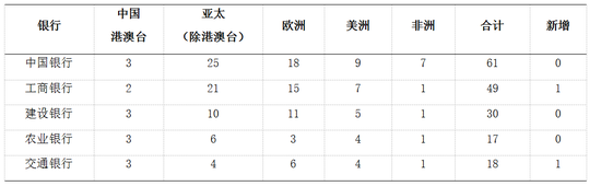 表2:2020年末五大行境外覆盖的国家和地区情况