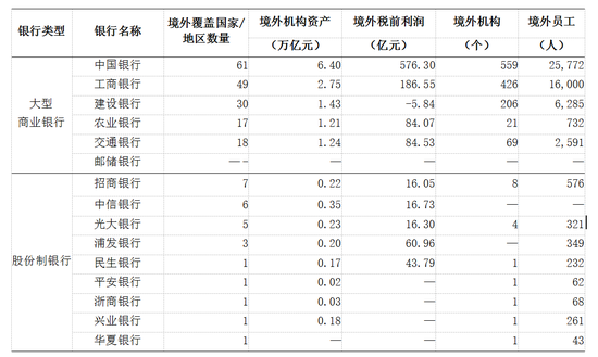 注:符号“-”代表未披露,部分银行境外含附属机构