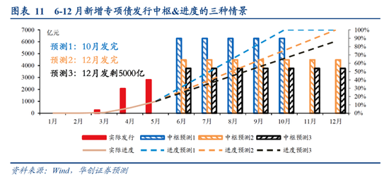 我们试给出6-12月新增专项债发行中枢&进度的三种情景: