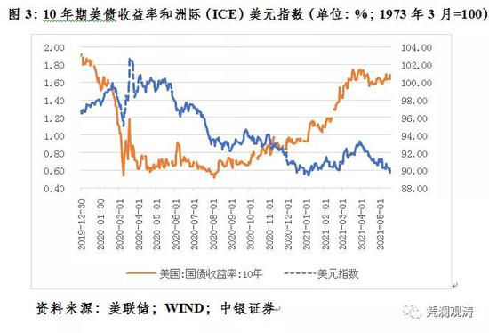 去年3月份,外资单月减持美债创下了历史新高,但在市场恐慌性抛售包括美债在内的一切可变现资产,逃向美元流动性的情况下,当月美指还升破了100,创下三年多来的新高。今年1月份,外资增持美债,月均美指环比却下跌0.3%;2、3月份,外资减持美债,月均美元指数环比持续走高,累计上涨2.0%(见图4)。