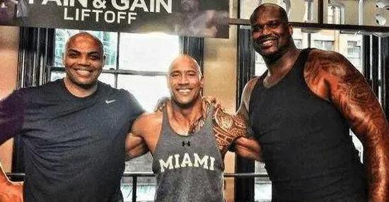 没有对比就没有伤害,在下面这张图片里,站在NBA球星大鲨鱼奥尼尔和空中飞猪巴克利身边,娇小的就成了巨石强森。似乎用娇小都有些不合适,用娇柔来形容更恰当些。