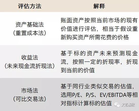 但其实从法规层面,从来没有强行规定必须要用收益法评估作为并购交易的估值依据,甚至评估报告都不是必须的,前些年监管环境较宽松的时候,也有交易采用券商出估值报告的形式来作为作价依据。只不过随着这些年监管对“三高”问题的高度重视,各家中介在做方案时都只能采用最稳妥、最大路的评估方法作为作价依据。