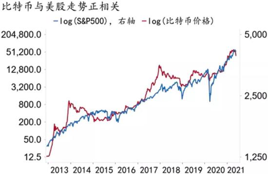 “数字黄金”的说法,在我看来更像是营销用语,值得斟酌。黄金作为贵金属有着实际的用途,例如制作珠宝、芯片等,而比特币则毫无内在价值。即便作为投资资产,黄金由于其市值高、流动性佳、波动性小,而且与股票走势没有太大的关联,在高度不确定的时期被证实为避险资产。而加密货币的表现则更像是一种风险资产,五月份的市场波动充分证明,比特币实在是无险可避。从更长的时序上看,比特币价格走势与同为风险资产的股票(特别是小市值股票)高度相似(图5)。