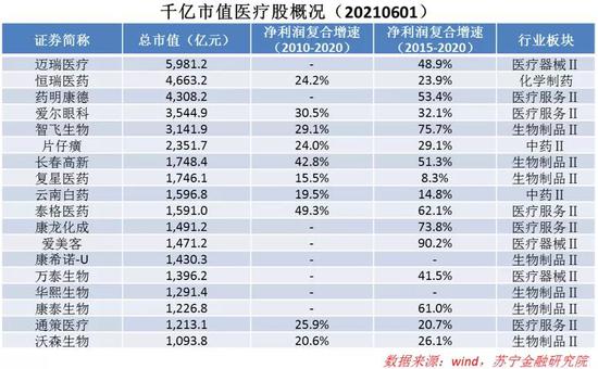 盘点千亿市值以上的18只医疗股,过去五年、十年净利润复合增速普遍在20%以上,有些甚至能保持在40%以上,再次表明盈利增长才是产生牛股的土壤。从子行业分布看,生物制品子板块7家公司,医疗服务板块5家,医疗器械板块3家,中药2家,化学药仅1家上榜。