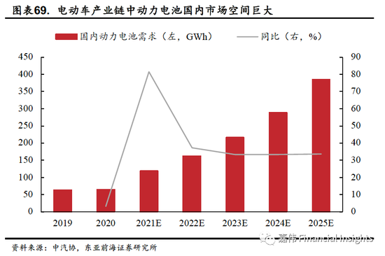 新能源汽车高景气下,动力电池明显受益。动力电池是新能源汽车不可缺少一部分,国内外市场空间巨大。目前国内动力电池市场广阔,我国2020年动力电池装机量为63.64 GWh,同比增加2.3%。2020年上半年疫情影响下游需求,动力电池装机数据有所下滑。随着经济复苏下游需求向好,6月份以来,国内动力电池装机量连续环比增长。12月份装机量为12.95 GWh,同比增加33.4%,环比增加22.0%。2021年1月装机量8.70GWh,同比增加273.53%。我们认为该向好趋势将延续。根据中汽协的测算,国内动力电池的需求将在2025年达到385GWh,相较于2020年增长5.1倍。