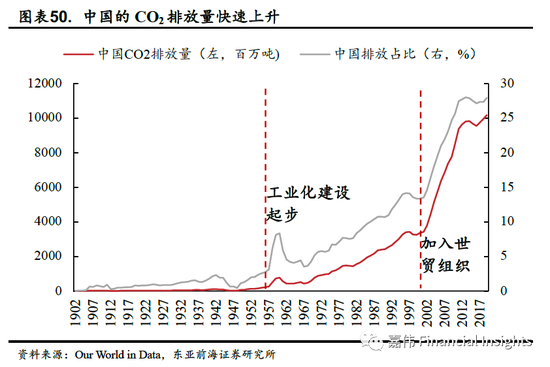 相较于发达国家,中国实现碳中和难度更大。大多数发达国家由于处于后工业化时代,在发展过程中产生大量碳阶段已经度过,其碳排放量往往已经处于下降阶段,目前很多发达国家已经实现碳达峰,而中国由于改革开放以来工业发展时间较短,且正处于碳排放上升阶段,因此要实现碳达峰、碳中和所面临挑战相对而言要大于其他发达国家。