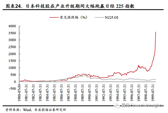 日本碳达峰过程使得相关产业明显受益。1974年以后在日本产业升级的大背景下,高科技相关公司股价实现了较好的增长,以索尼为例,索尼2000年的股价相对于1980年提升了近35倍,大幅跑赢日经225指数。