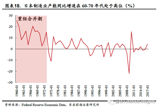 20世纪60年代至70年代日本依赖重工业并购重组提升能源利用效率。1971年以前日本能源效率系数稳定降低,表明日本能源利用效率有所提高。此阶段日本工业主要以重工业为主,且在政府支持背景下众多重工业集团开始并购重组。根据日本公平交易委员会调查,1961年前后,其所受理合并数大幅增加,1961年-1973年间平均每年增加7%,其中大企业合并同期增加48%,此期间产生了日本新日铁公司、三菱重工业、川崎重工等巨无霸企业。由于大企业存在规模效应,日本大型企业并购重组在一定程度上提高了日本能源利用效率,但是其提升速度相对较慢。
