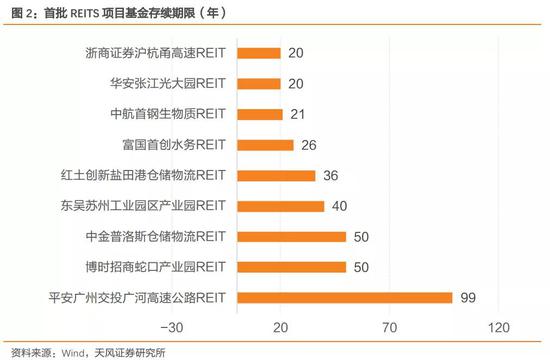 REITS项目的基金存续期限和基础资产的期限有明显差异。从基金存续期限来看,首批REITS项目期限各异,最短的期限仅20年,最长的期限99年。