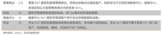 美国REITs大多数投资于房地产类型的资产,包括办公室、住宅、仓库、零售物业、康养中心、数据中心和酒店等,当然也有一些非房地产类型的基础设施。大多数REITs专注于特定的资产类型,但有些在其投资组合中持有多种类型的资产。