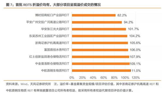(2)REITS投资价值判断的核心是资产估值,首批上市REITS项目均采用收益法估值,即对未来现金流进行折现。收益法下,需要重点关注受益期限、未来收入及预期增长、运营成本、折现率等。首批REITS项目未来收入及预期增长、运营成本等预期相对合理,折现率整体较高,但部分项目受益期限较短。综合来看,首批REITS具备较高的投资价值,近两年预期分红比例较高,提高了收益的确定性和吸引力,市场也给予了大部分项目溢价认购。