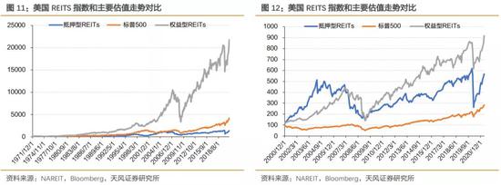 美国REITS项目业绩表现良好。从1972年REITS指数成立至2020年底,其年度复合收益达到11.4%,超过同期标普500指数的7.6%,另外,权益型REITS项目的复合增速显著高于抵押型REITS项目。
