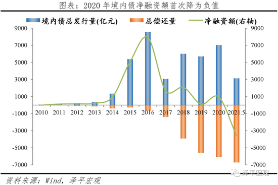 前期债券市场快速发展而增发的大量债券逐步迈入到期年份,债券市场当年到期偿还量从2015年的10.2万亿逐步飙升至2021年的38.3万亿,累计增长275.5%,而2020年现价GDP仅较2015年增长47.5%,债务扩张速度远超GDP增长速度。