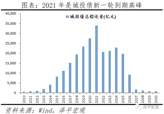 一是,债务集中到期,但融资收紧,企业还债压力加大。2021年是城投债到期高峰,且集中在二、三季度,到期占2020年存量30.8%。在债务到期较大、再融资紧张的情况下,城投“借新还旧”压力大大增加。