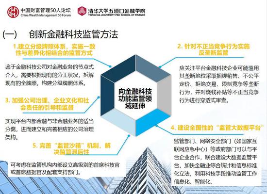 第四,课题组建议建设一个全国性的监管大平台,监管大数据的平台。监管也需要更智能化的工具、流程和方法。