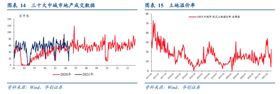 土地方面,6月13日当周溢价率有所回升,达到22.97%。成交面积依然偏低。6月前两周百城住宅类成交面积957万平米,去年同期是1459万平米,2019年同期是1135万平米。1-5月,百城住宅类土地成交面积是8216万平米,不及2019-2020年同期。2020年同期是9945万平米,2019年同期是9554万平米。