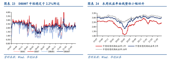 截至6月18日,DR007收于2.2039%,DR001收于2.0290%,较上周环比分别变化+5.23bps、+2.78bps。1年期、5年期、10年期国债收益率分别报2.5274%、2.9867%、3.1202%,较上周环比分别变化+8.15bps、-2.18bps、-0.74bps。本周央行公开市场操作资金净回笼100亿(不考虑国库现金定存),资金面维持平稳。周中经济数据发布,5月工增两年平均增速6.6%(前值6.8%),基本符合预期,且地产竣工走强、社零结构改善、服务业小幅好转,收益率曲线整体上行。周五存款利率定价改革将于下周落地的消息传播,反而引发“降息”预期,国债期货异动,长端利率下行。但我们认为市场这一预期或需修正。