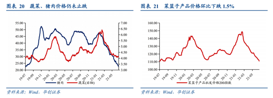本周菜篮子价格继续下跌。截至6月18日,菜篮子价格200指数收于110.75,较上周环比下跌1.5%。蔬菜价格收于4.08元/公斤,较上周环比下跌1.7%,猪肉价格收于22.77元/公斤,较上周环比下跌4.7%。6月16日,国家发展改革委发布消息称,全国平均猪粮比价为5.88∶1,6月7日~11日,全国平均猪粮比价为5.88∶1,进入过度下跌的三级预警区间。建议养殖场(户)科学安排生产经营决策,将生猪产能保持在合理水平。并表示下一步其将会同相关部门密切关注生猪生产和市场价格走势,及时开展储备调节,促进生猪市场平稳运行。