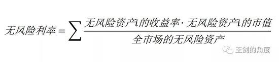 最终,一位投资者的无风险利率,可以用他自己的无风险投资的收益率。当然,如果衡量一项资产的市场价值,可以选取市场上全部无风险资产,收集它们的收益率,然后按各类资产的部市值进行加权平均。这是我们估计全市场无风险利率的一种思路。