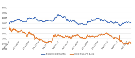 图3 中美两国十年期国债的实际收益率对比