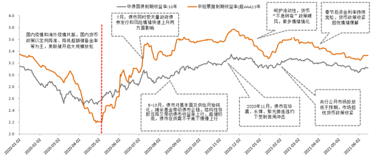 从2016年央行调高OMO指导利率,到2018年《资管新规》真正落地,宏观层面持续出台防风险、降杠杆的政策。去年疫情有所放缓,随着疫情企稳,政策重心逐步转向重新加强去杠杆、宏观风险防控。相关政策调整文件频频下发,谨慎预期再度被强化。在预期管理方面,如何更好地加强主动管理值得持续的思考。