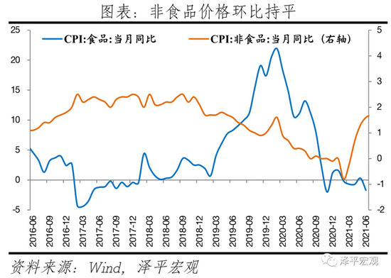 6、食品项拖累CPI回落,非食品价格环比持平