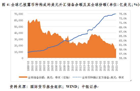 3.这次外国投资者持有美债下降与全球美元储备减少同步。
