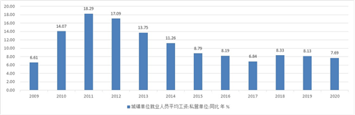 图3 城镇私营单位平均工资增速低位徘徊