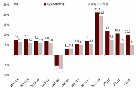 图表:中金宏观组2021年下半年GDP增速预测