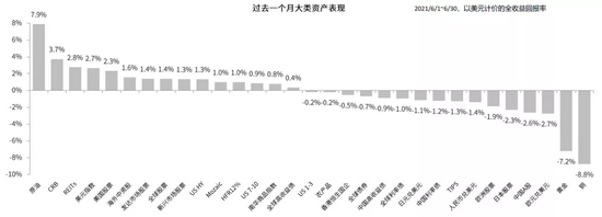 图表:6月大类资产表现(以美元计价)