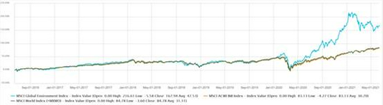 图1.样本公司绿色收入至少为50%的MSCI环境指数的表现