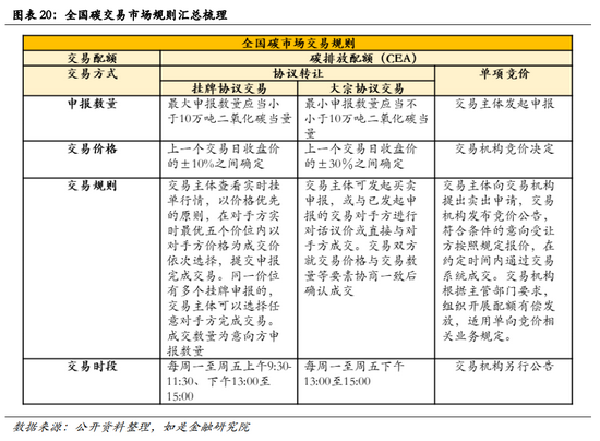 交易时间——与A股基本相同。根据上海环交所发布的《关于全国碳排放权交易相关事项的公告》,全国碳交易市场交易时间与A股基本相同。除法定节假日及交易机构公告的休市日外,采取挂牌协议方式的交易时间为每周一至周五上午9:30-11:30、下午13:00至15:00;采取大宗协议方式的交易时间为每周一至周五下午13:00至15:00。