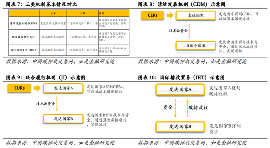 《京都议定书》中提及三大灵活减排机制——即清洁发展机制(CDM)、联合履行机制(JI)和国际排放贸易(IET)。