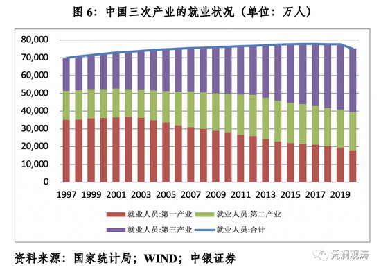 上半年,外需强劲直接带动了工业生产的快速恢复,也造成沿海 工业和外贸大省出现招工难问题。然而,从统计局的就业数据看,截 至去年底,全国就业人员总计 7.51 亿人,较上年末减少 2407 万人。其中,第二产业就业增加 238 万人,第一三产业就业分别减少 1730 万和 915 万人(见图 6)。可见,受益于出口高增长景气的第二产业 新增就业,不足以完全吸收或抵消第一三产业转移或减少的就业。