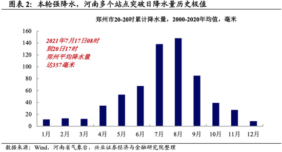 逻辑上,强降水可能抬升食品价格,但从历史数据上看影响并不显著。强降水可能从以下两方面影响食品价格:1)洪涝导致田间积水,影响农作物生长,造成农作物减产或绝收;2)洪涝阻碍正常运输,抬高运输成本。而从上面的分析来看,河南省是中国的农业大省,引发市场担忧是否会导致通胀上行。