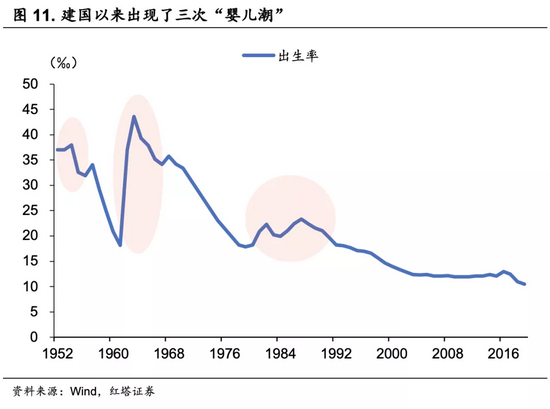 在全球产业转移的过程中,我国承接的产业主要集中在劳动密集型产业和传统资本密集型产业,存在巨大的劳动力需求。新中国成立之后,我国迎来了三次“婴儿潮”,分别是上世纪50年代刚解放时期,1962年三年自然灾害结束之后,以及80-90年代的回声婴儿潮时期。在中国承接海外转移的这一阶段,人口结构呈现年轻化,为国内制造业发展注入了大量生力军。