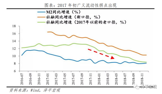 2016年8月,货币政策转紧,狭义流动性收敛。自2016年8月货币政策转向以来,DR007水平自低点上行。2016年8月至2018年初,DR007中枢由2.3%波动上行至近2.8%,始终位于7天逆回购政策利率上方。2017年11月,社融增速回落,广义流动性转紧。2017年,金融去杠杆带动M2增速大幅回落、债券利率快速上行,但社融增速相对平稳。但2018年,实体经济去杠杆到来,非标融资大幅萎缩,社融增速快速回落。