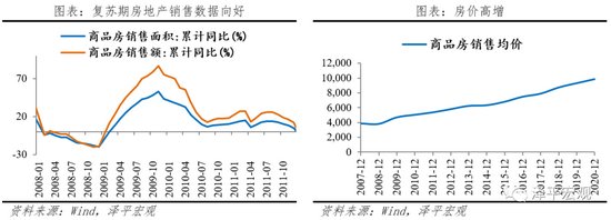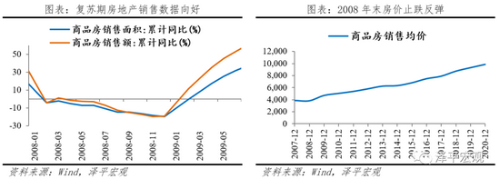 房市:广义流动性宽松,房地产量价齐涨。在经济衰退期(2008.09-2008.12),狭义流动性释放,商品房销售面积和销售额的跌幅放缓,销售均价跌幅为-1.7%。在经济复苏期(2009.01-2009.06),“天量信贷”和四万亿财政刺激计划的效应显现,广义流动性宽松。商品房的销售面积和销售额增速同比大幅上涨,销售均价涨幅达7.5%。