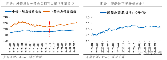 债市:广义流动性收紧后债市走牛。狭义流动性紧缩期(2020.05-2020.10),“稳货币+宽信用”,债市整体表现平平,自2020年5月起持续调整,处于“熊平”阶段。2020.05-2020.10,中债中短期和长期债券指数的涨幅分别为-2.5%和-5.8%,长期债券回调力度较中短期更大。广义流动性紧缩期(2020.11-至今),“稳货币+结构性紧信用”,债市走牛。自2020年4季度末,中债中短期和长期债券指数的涨幅分别为2.7%和6.9%,拉长债券久期可以博得更高收益。