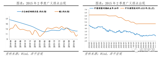 (3)流动性演绎:2014年4月狭义流动性转松,12个月传导至广义流动性,宽松持续长达27个月,约1年半GDP企稳