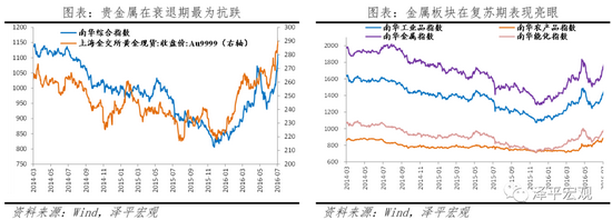 商品:供给侧改革迎商品牛。在宽松前期(2014.4-2015.12),商品仍延续下行,南华综合指数下跌约29%,工业品、农产品、金属、能化指数分别下跌约34%、18%、33%、34%。随着2016年供给侧改革发力,去产能、环保督察等压缩供给,大宗商品反弹,2016.1-2016.7南华综合指数上涨约34%,工业品、农产品、金属、能化指数分别上涨35%、15%、41%、37%。